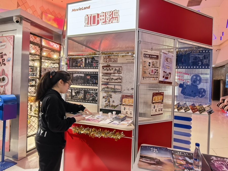在凯德虹口商业中心金逸影城门口,记者看到一个名为虹口·电影岛的小亭子。影城工作人员介绍,配合电影地图推出的“打卡得扭蛋机会”活动很受欢迎。不少影迷看完电影后,就在这里打开MovieLand小程序,打开“上海电影地图虹口专区”,即可获得抽奖机会,兑换虹口建筑徽章、虹口电影票夹等文创产品。