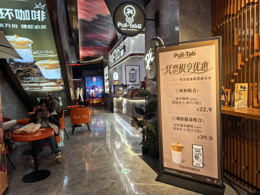 瑞虹新天地太阳宫寰映影城门口的咖啡馆凭票根享优惠。周楠 摄