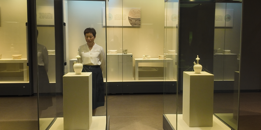 定州博物馆以白瓷为主题的“天下大白”展厅中,这句诗词被印在展板显眼位置。游客驻足于此,抬头看苏公千年前留下的赞誉,低头与这“颜色天下白”的瓷器对望。