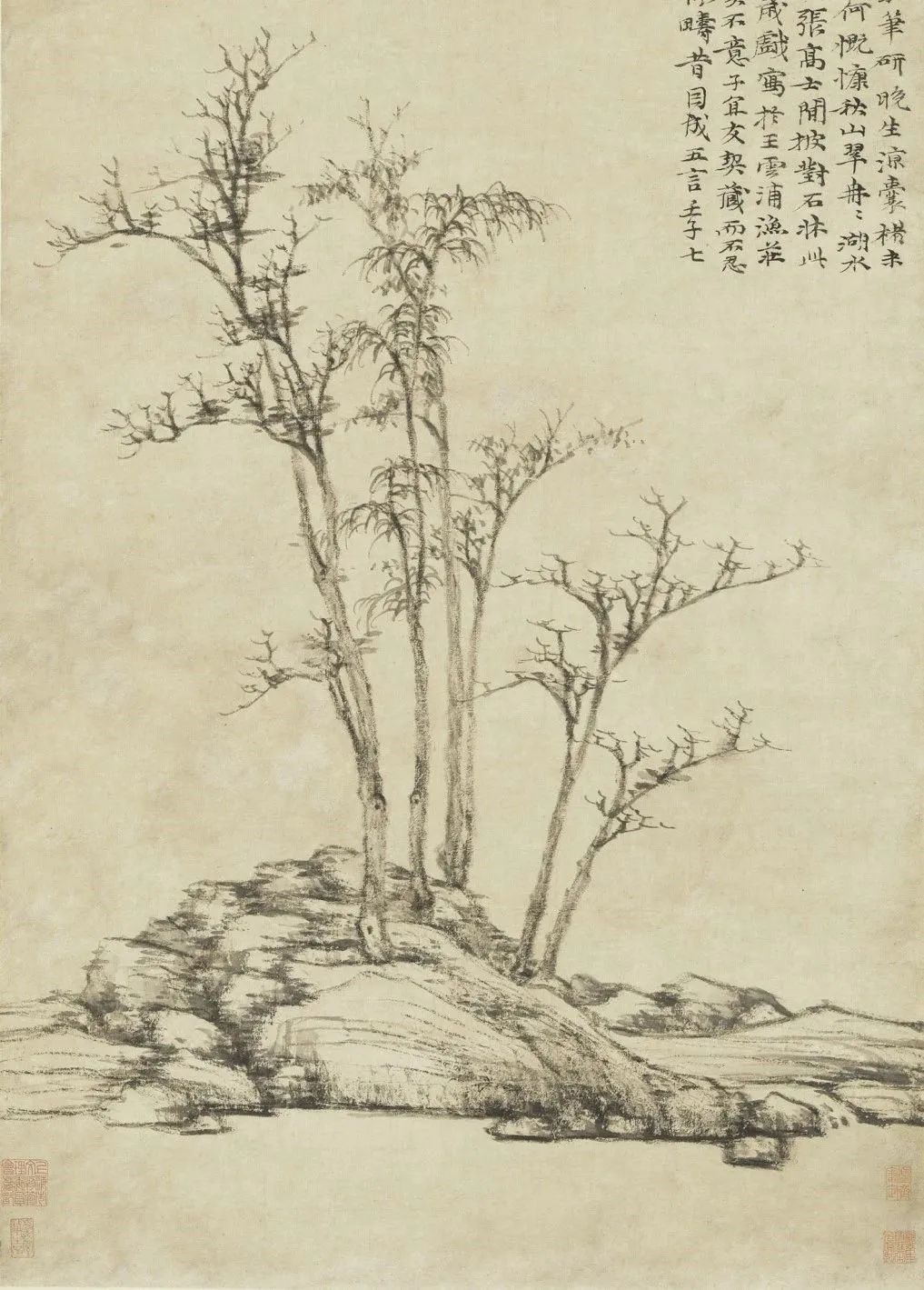 元 倪瓒 渔庄秋霁图(局部)